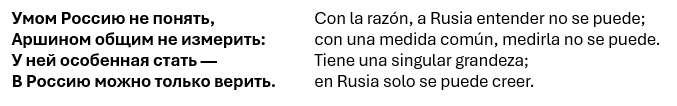 Lo resumió Fiódor Tiútchev en un cuarteto inmortal, que aún hoy recorre la memoria de Rusia: